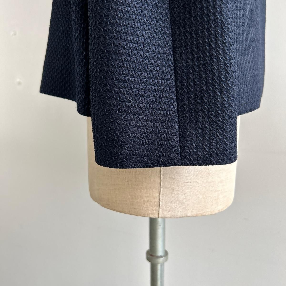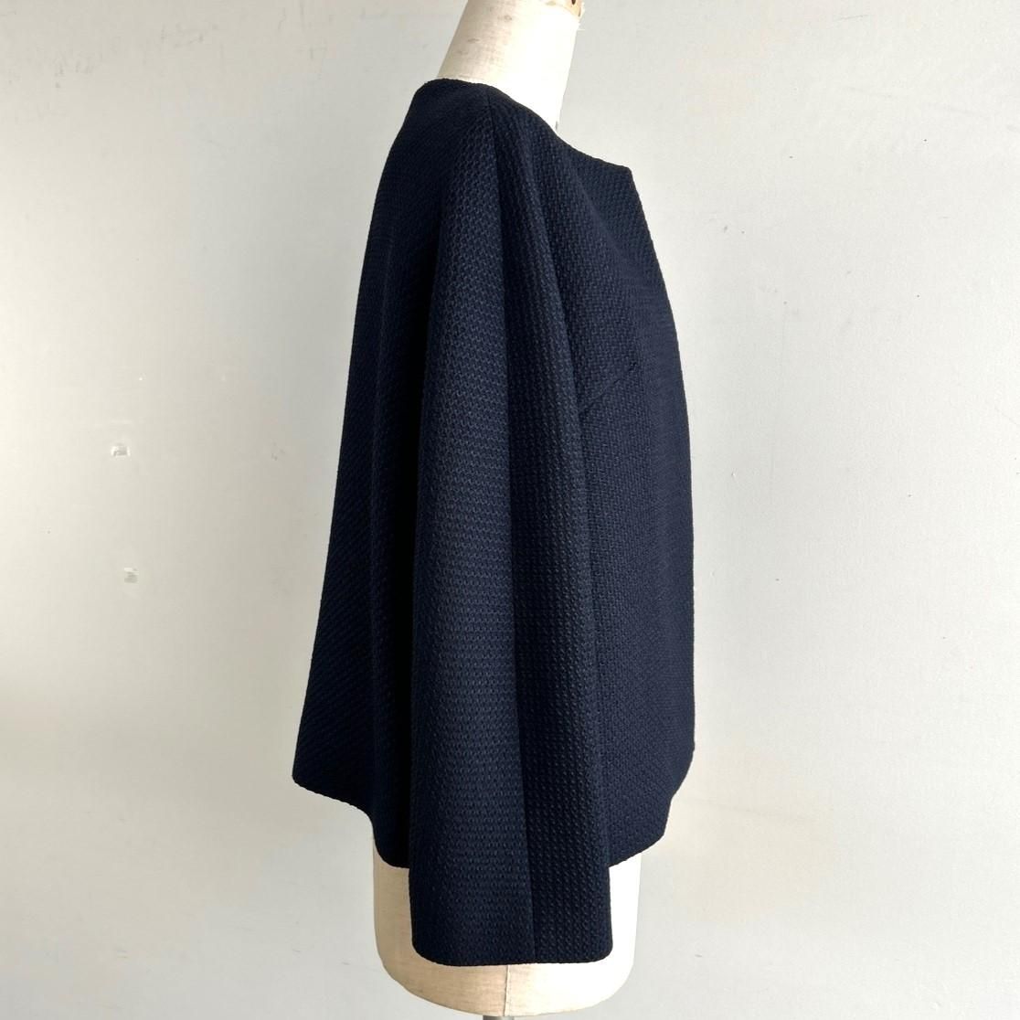 人気ジャケットと同型で素材違いのジャケット。生地はライトツイード 立体感のある美しい織目の生地です。展開はネイビー1色のみ少し濃いめのネイビーです。オケージョン使いの時はブラックのボトムとのコーディネートをオススメします。落ち着いた印象になります。