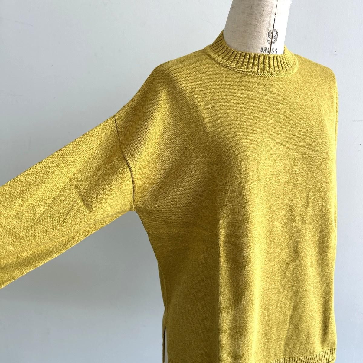 前は程よい丈感、後ろはやや長めのカットで気になる部分を自然にカバー。クルーネックが首元をすっきりと見せ、後ろのボタンもポイントに…。薄手でやわらかな生地が肌に心地よく寄り添い、毎日でも袖を通したくなるような着心地です。 季節をまたいで活躍してくれる頼れる存在。 さらに、お家で気軽にお洗濯できる「洗えるニット」だから、忙しい日々でもお手入れ簡単。 毎日の暮らしに寄り添ってくれる。