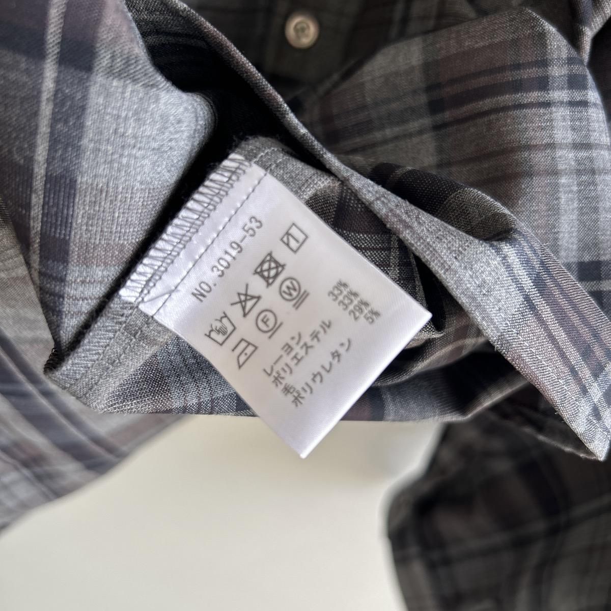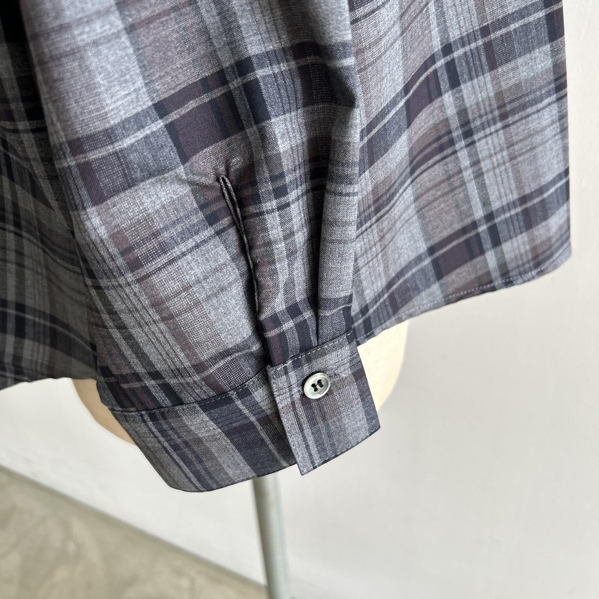 ポリエステル、ウール、レーヨンをブレンドした生地は、軽やかでドライな質感が特徴。ハリとしなやかさのバランスがちょうど良い。シワになりにくく、美しいシルエットをキープします。控えめな光沢感のチェック柄が、大人っぽくシックな雰囲気を演出。落ち着いたトーンで合わせやすい一着です。