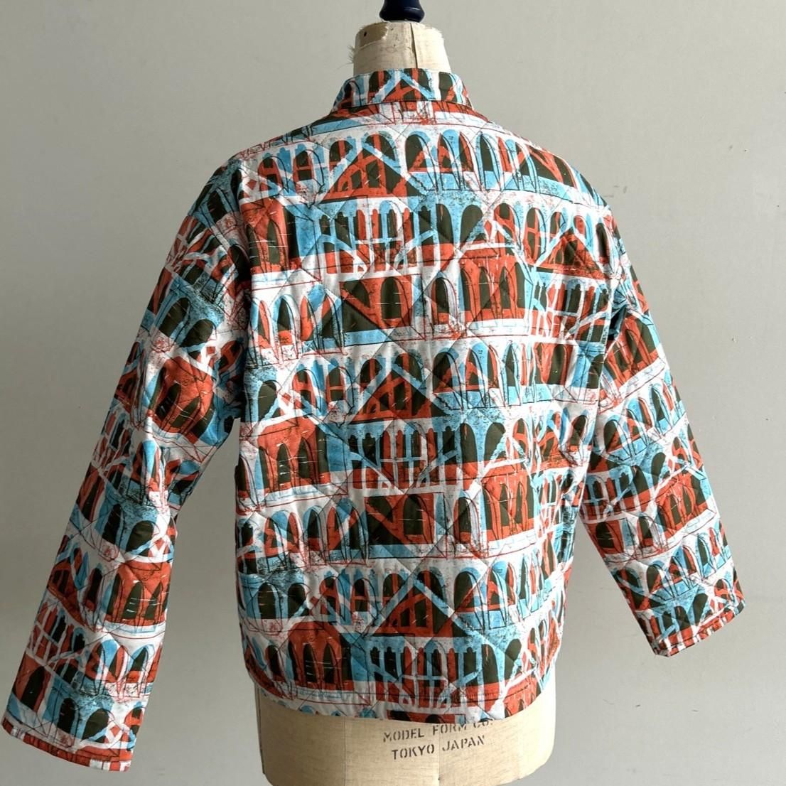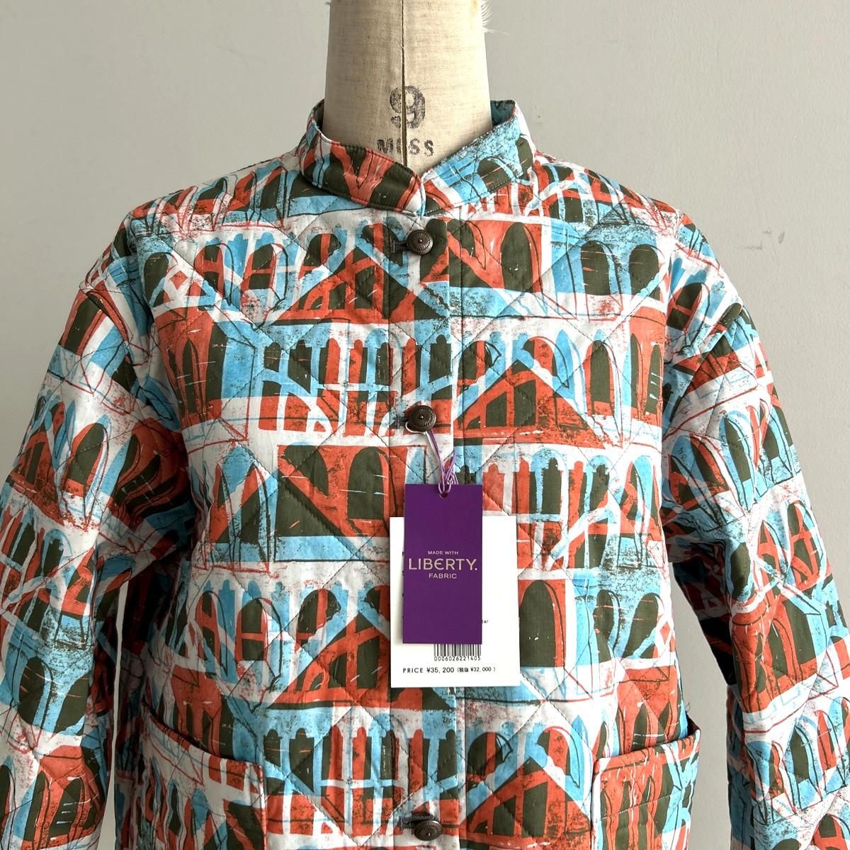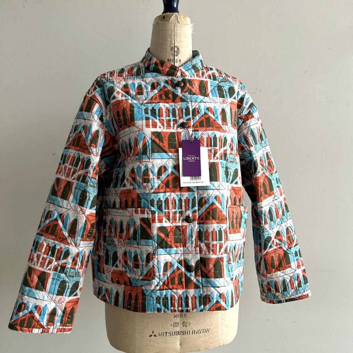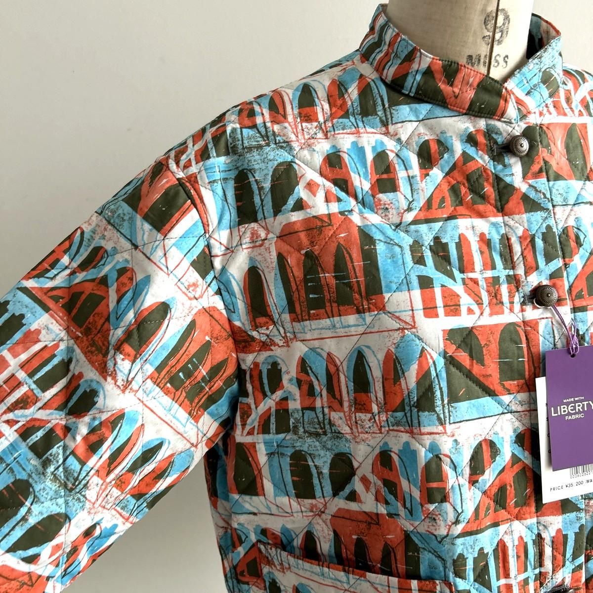 程よい厚みの中綿入りで、軽く羽織れてあたたかいリバティプリントのキルティングジャケット。